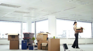 19522699 – businesswoman in office with moving supplies