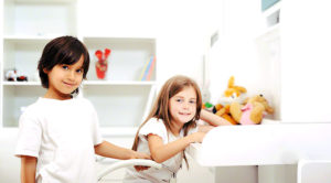 Adorable kids brother and sister at home