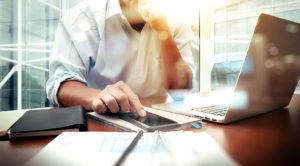 business documents on office table with smart phone and digital