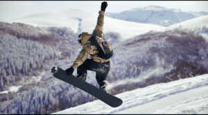 freestyle snowboarder jump and ride
