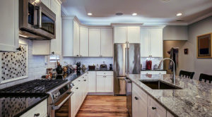 High-end luxury kitchen with granite countertops and white cabin
