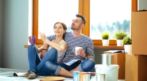 Portrait of young couple moving in new home