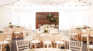 Wedding decorated restaurant in light colors and rustic style